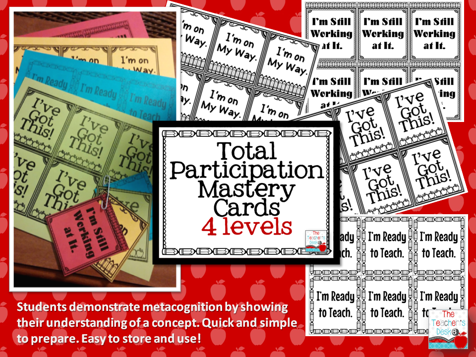Mastery Cards are meant to be used by students while they are working. Students select the level of understanding where they are during discussions and work sessions to inform the teacher who then can concentrate on those who are "still working at it." Simple to make and use, you can grab your forever freebie set HERE.