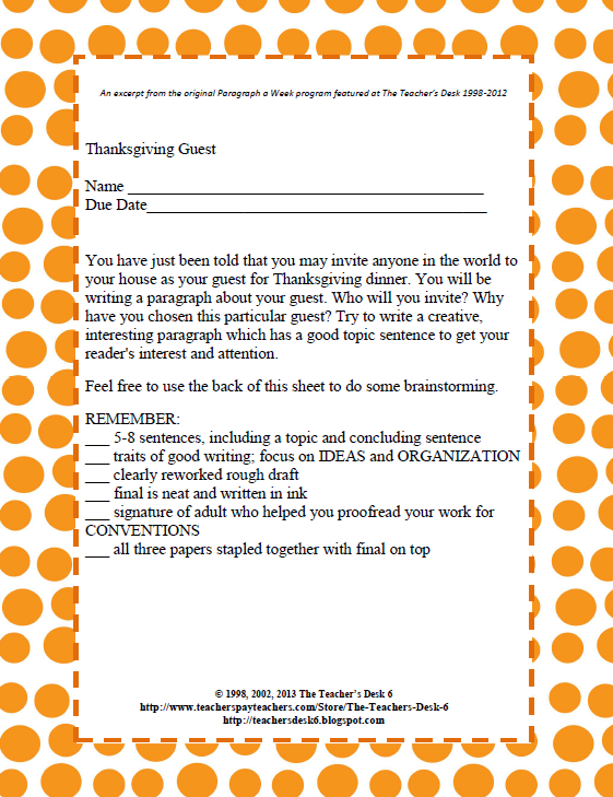 Teaching Tuesday: Thankful for the Tuesday Writing P.A.W.S. featured another topic from my Paragraph a Week Program, one with a Thanksgiving theme, and was part of a linky hosted by HoJo's Teaching Adventures.
